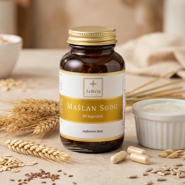 Wiele suplementów z maślanem sodu wymaga przyjmowania 2-3 kapsułek dziennie, aby osiągnąć skuteczną dawkę kwasu masłowego. Maślan Sodu od Avlivia dostarcza ~380 mg czystego kwasu masłowego w pojedynczej kapsułce - to jedna z najwyższych dawek na rynku. Jedna kapsułka dziennie wystarczy.